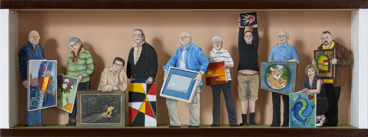 Die Enthusiasten // the enthusiasts, Öl auf Holz, 15 x 40 cm, 2014